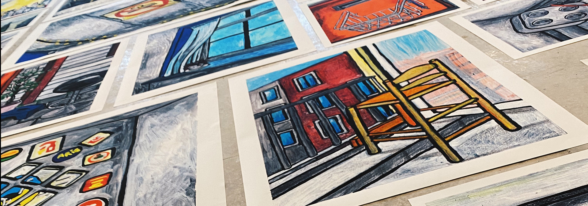 Ik besefte dat ik destijds nooit echt heb stilgestaan bij hoe mooi die tijd was, en hoe fijn we het met elkaar hadden. Dat gevoel wilde ik anderen graag laten ervaren. Daarom bezocht ik gezamenlijke ruimtes van studentenhuizen en liet ik mijn nieuwsgierige blik daar op ontdekkingstocht gaan. Het resultaat: een serie van 82 tekeningen, allemaal vondsten uit die gedeelde ruimtes.